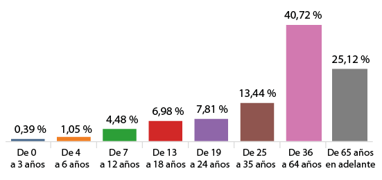 Respecto a la distribución por grupos etarios, la edad es una variable que complejiza el proyecto de vida de las personas con discapacidad. Conforme avanza la edad, se incrementa el riesgo de afectación. En la actualidad, son cada vez más las personas con discapacidad que oscilan entre los 30 y los 65 años de edad.