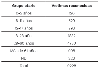 Elaboración propia a partir de información de la Unidad de Víctimas de Colombia.