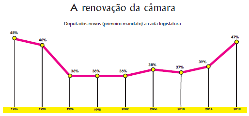 Campos, Ana Cristina. “Taxa de renovação da Câmara dos Deputados foi a maior em 20 anos”. Agência Brasil, 2018.