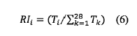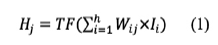 Esta función de transferencia permite convertir de una red neuronal lineal a una no lineal. El valor del nodo de entrada asignado por la red neuronal es determinado por la importancia de la información que carga la neurona, y el valor de la capa oculta representa la contribución a la capa de salida. Consecuentemente, la importancia del nodo de entrada puede ser calculada en función del nivel de afectación de algunos nodos. El método Garson (1991) se aplicó para calcular el valor de contribución de los nodos de entrada. El algoritmo de Garson usa el producto del peso de las conexiones para calcular el grado de contribución de los nodos ocultos j a los nodos de salida o. La contribución de cada nodo de entrada k contra cada nodo oculto j se puede expresar así: