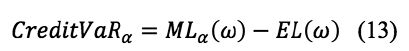Así también, se estimó el valor en riesgo (VaR) de crédito o CreditVaRa,