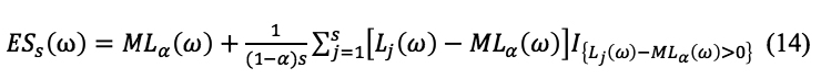 Como medida de riesgo extremo se calculó el déficit esperado o Expected Shortfall (ES). El ES es la pérdida esperada luego de superar las pérdidas mayores a la máxima pérdida del portafolio a un nivel de probabilidad α (Clemente y Romano 2004):