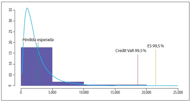 Densidad pérdidas estimadas, Credit VaR