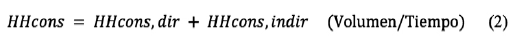 Para el caso de un consumidor, la HH (HHcons) puede ser calculada añadiendo a la HH directa (HHcons,dir) del consumo del individuo, la HH indirecta del mismo (HHcons,indir), como ya se había señalado anteriormente (Hoekstra et al 2011).