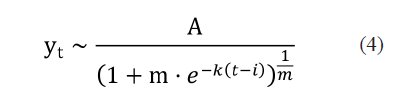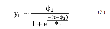 donde los parámetros ϕ1, ϕ2 y ϕ3 describen el comportamiento de capacidad de carga, simetría del comportamiento y la rapidez del crecimiento, respectivamente.