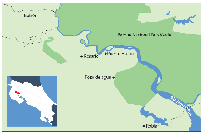 Estas comunidades se ubican en el margen izquierdo del río Tempisque que desemboca en el océano Pacífico y en su cuenca media y baja alimenta múltiples humedales. Estos ecosistemas acuáticos son estacionales y algunos desaparecen por completo durante la época seca. Por la riqueza biológica, la belleza escénica y los múltiples servicios ecosistémicos que brindan estos territorios, se han establecido áreas silvestres protegidas donde destaca el sitio Ramsar Palo Verde que comprende los humedales Parque Nacional Palo Verde (PNPV), Reserva Biológica Lomas Barbudal, los Refugios de Vida Silvestre Mata Redonda, Cipancí y el Tendal; y los humedales Sonzapote, Corral de Piedra, laguna Madrigal y Zapandí (Murillo y Miranda 2018), comunidades de la CBRT beneficiarias del proyecto. Las comunidades donde se ha desarrollado el proyecto son: