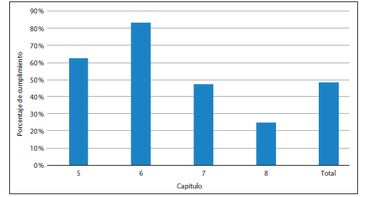 Los resultados de la auditoría a la norma INTE/ISO TS 22317:2016 revelan un 20 % de cumplimiento total, lo cual coloca a la institución en un nivel incipiente de desarrollo, esto se debe a que aún no se ha realizado un análisis de impacto sobre los servicios que ofrece la institución; sin embargo, existen algunos avances gracias a los esfuerzos que realiza la CGRAE de la institución y a diferentes insumos encontrados en documentación relacionada.