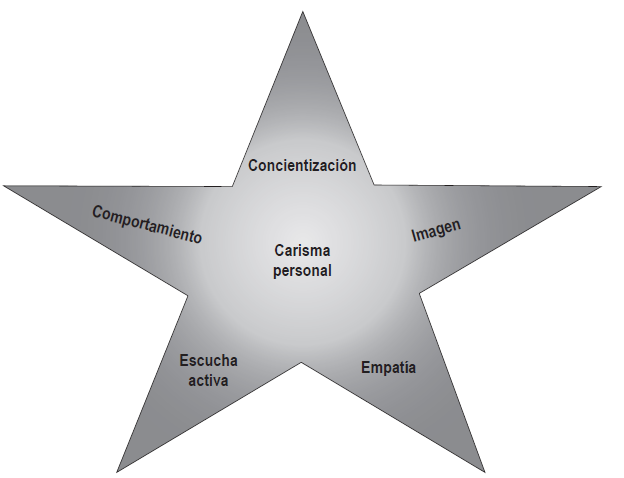 Una vez definidos los cinco ejes de lo que puede aprenderse, es decir, de aquellas destrezas que si bien no estuvieran muy marcadas en nuestro código genético las podríamos desarrollar con relativo grado de satisfacción, pasamos a un elemento que, por otro lado, es innato: el carisma, es decir, aquella química mágica que poseen algunas personas para suscitar agrado y simpatía en el grupo, para motivar y generar entusiasmo acerca de algo o de alguien. Se trata de un don absolutamente único, tan excepcional como la genialidad de un pintor, o de un músico que toca el piano sin haber tomado jamás clases; es este elemento metafísico, por no caer en el terreno de las definiciones religiosas, que se halla misteriosamente en algunos seres humanos, un aliento sobrenatural que sopla en el interior de algunos privilegiados para que, a su vez, a través de sus dones, inspiren al resto, emocionando, motivando, guiando.