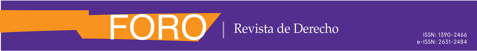 Foro: Revista de Derecho es una publicación semestral que estimula la producción académica de primer nivel. Se publica semestralmente desde noviembre de 2003 con el objetivo de cumplir con el rol de promoción y desarrollo del conocimiento, cuya dinámica nos exige respuestas innovadoras a las complejas situaciones que se producen en las realidades nacionales y regionales.