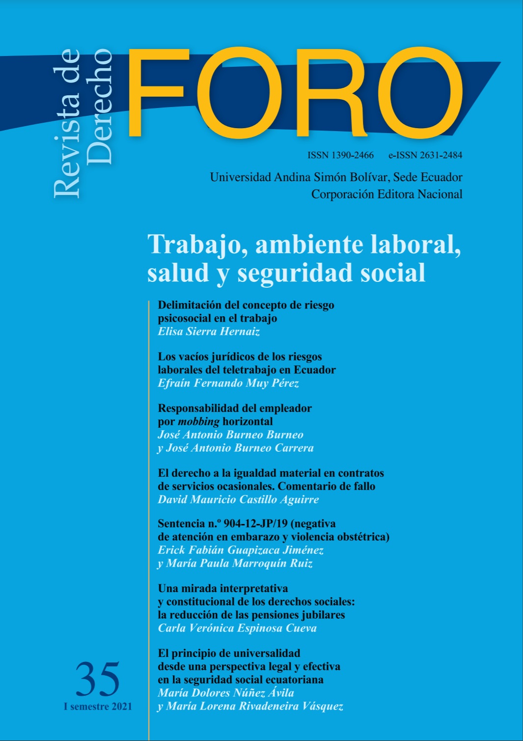 REVISTA DE DERECHO FORO: REFORMAS EN LO LABORAL Y LA SEGURIDAD SOCIAL ¿QUÉ SE HIZO Y QUÉ FALTA?