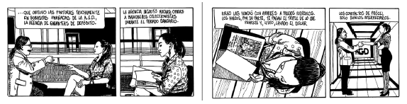 Coda: El ETM es también un texto de Quito, un documento interesado en la captura en todas sus formas. La captura de información fugaz, de ladrones, de abusadores, de secretos, pero sobre todo de imágenes; toda captura conceptual va acompañada en todo momento de la captura por medio de la ilustración de una representación llena de tiempo, el dibujo, que demanda de nosotros una inversión de consumo paralela y comparable a la de su producción. Este juego doble, específico de la novela gráfica, esta técnica de oposición al consumo desechable que la novela desdeña, finalmente, imita la reciprocidad que la novela propone entre lo irreal del arte y lo prosaico de lo real.