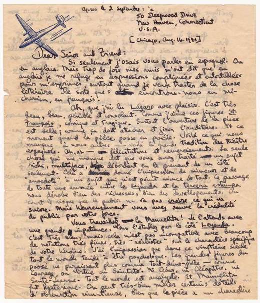 Carta inédita de Thornton Wilder a Demetrio Aguilera Malta, 16 de agosto de 1941.
