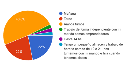 En la figura 3, observamos que el 50 % del grupo trabaja en ambos turnos (desde las 8 hasta las 17 horas), motivo por el cual decidimos que los encuentros se realizaran entre las 17 y las 18 horas.
