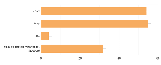De los medios disponibles para realizar las videollamadas, el 93 % mencionó conocer la aplicación Google Meet, y el 91,5 % reconoció tener experiencia en el uso de Zoom (ver figura 5). Finalmente utilizamos esta última herramienta porque de acuerdo a la conectividad del hospedador era el programa que funcionó mejor.
