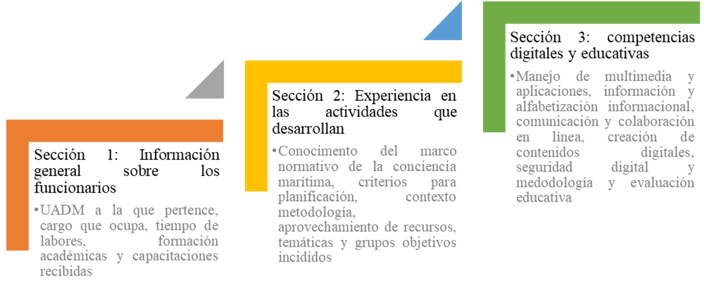 La encuesta se estructuró en 25 preguntas cerradas y se diseñó de manera online mediante la herramienta Google Forms. La figura 6 representa de manera general la estructura de la encuesta aplicada.
