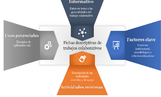 Las fichas descriptivas vinculadas a los trabajos colaborativos identificados, fueron estructuradas para contener, al menos, los siguientes componentes (Figura 8):