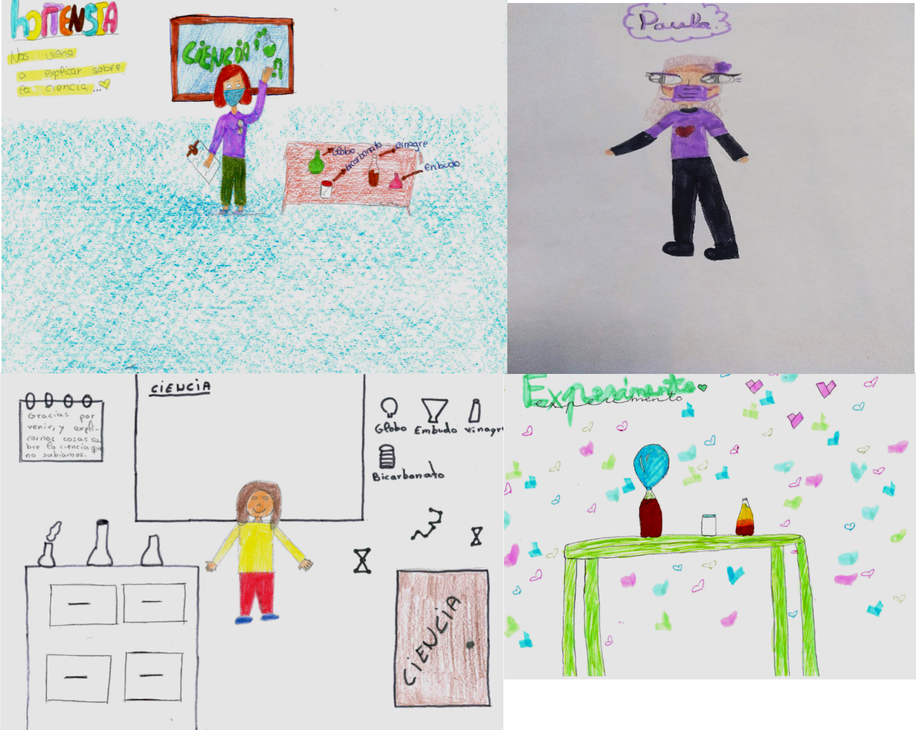 La charla finaliza con la presentación de la exposición de las mujeres científicas (Figura 2) y con el visionado de un vídeo realizado por investigadoras del CSIC de Sevilla, donde se observan distintas niñas explicando el trabajo de sus madres y el porqué ellas también quieren ser científicas (CSIC de Andalucía y Extremadura, 2020). Igualmente, se concluye la sesión invitando a los estudiantes a realizar un dibujo sobre la charla-taller (Figura 3).