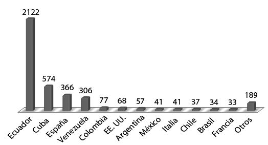 Dado el objetivo de establecer un panorama general de las personas con título doctoral en el SES ecuatoriano, este trabajo usa registros de dos fuentes: los reportes de todas las universidades y escuelas politécnicas ecuatorianas (59 en total) hechas al Consejo de Evaluación de la Educación Superior (CACES), y los de la secretaría del ramo (Senescyt).2 Se cruzaron las bases y los datos obtenidos con el registro de todos los profesores con doctorado, titulares o visitantes, entre los años 2013 y 2018, cuyo total asciende a 3959. Estos datos, que se presentan de forma descriptiva, incluyen universidad de trabajo, nacionalidad (para ecuatorianos, provincia de origen), género, título universitario, universidad en la que se obtuvo el título, y país de obtención.