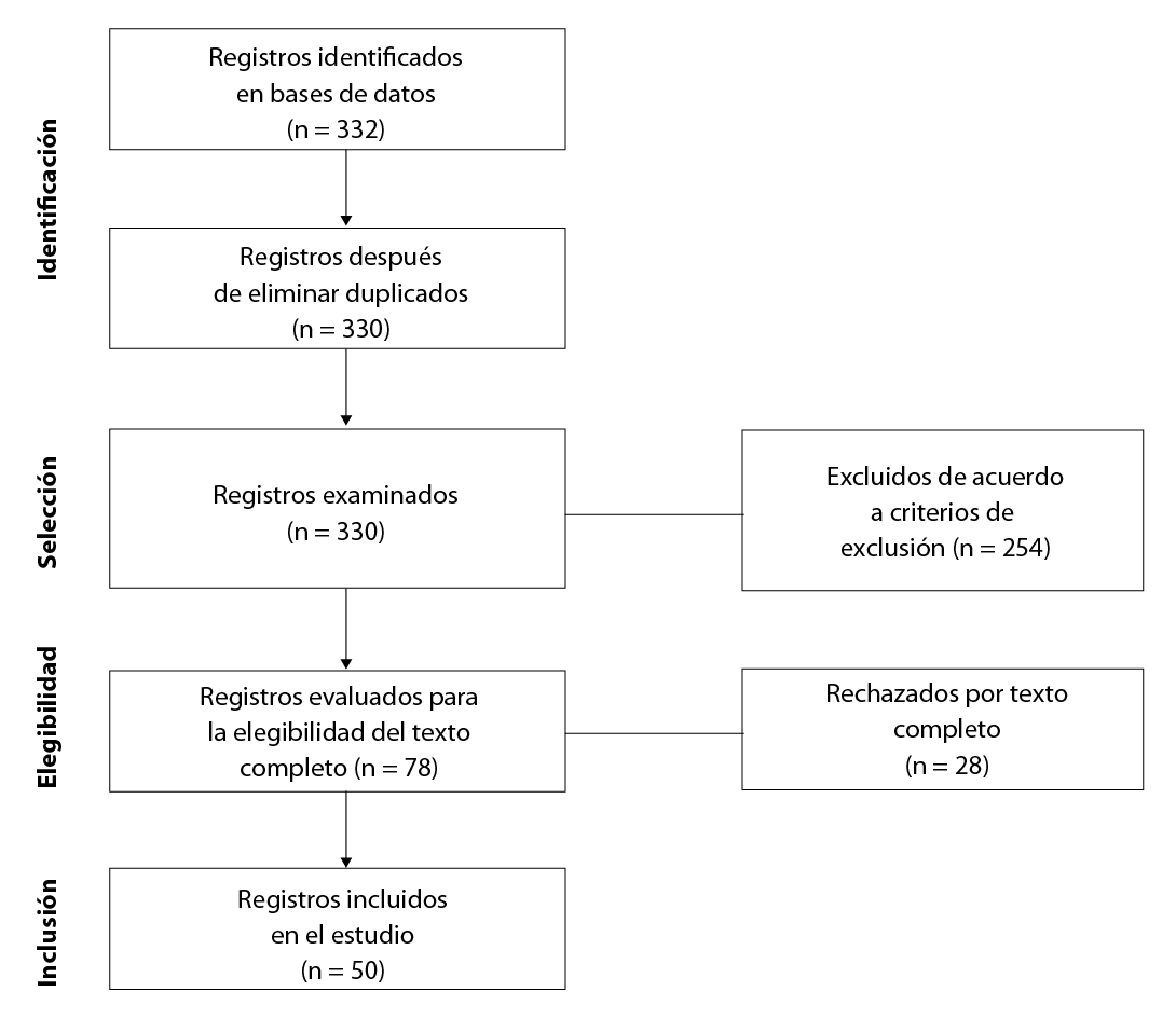A partir de los criterios y lineamientos establecidos, se realizó la selección final de artículos para incluir en la revisión sistemática realizada. Cabe resaltar que, aunque un criterio de inclusión establece que los artículos de revisión y los de investigación son igual de válidos, se priorizaron los de investigación, tanto cualitativa como cuantitativa, por contar con datos considerados como más relevantes para el presente trabajo.