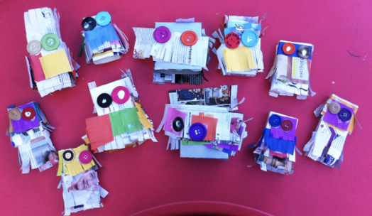 Fig. 3. Títeres realizados con cajas de medicamentos, utilizados posteriormente para una función de teatro.
