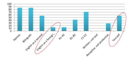 in purely linguistic terms — There is a mismatch between what is thought to be gained from learning English and what participants think they have actually gained from it |