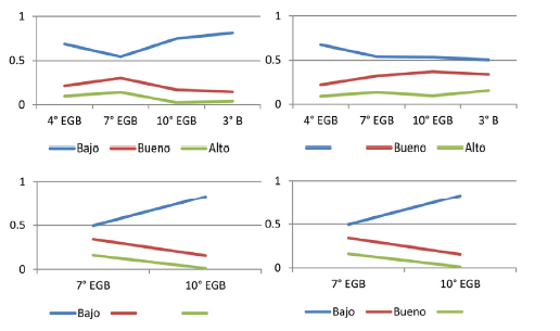 Se puede observar que en los primeros años (4º EGB), existen