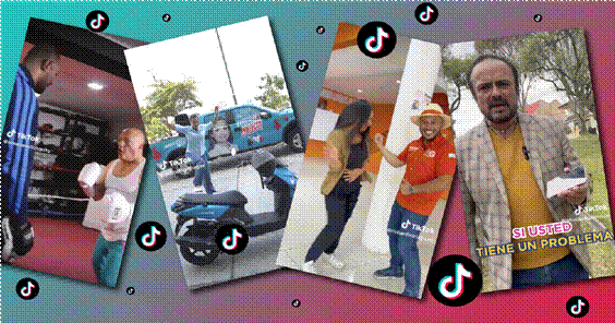 Figura 6. Capturas de pantalla de tiktoks de los candidatos Omar Cevallos, Marcela Aguiñaga, Richard Intriago y Paúl Carrasco.