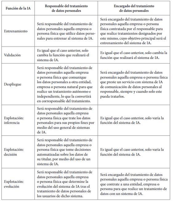 Tabla 1 . Esquema sobre la relación entre los roles del sistema de protección de datos personales y el uso de la inteligencia artificial
